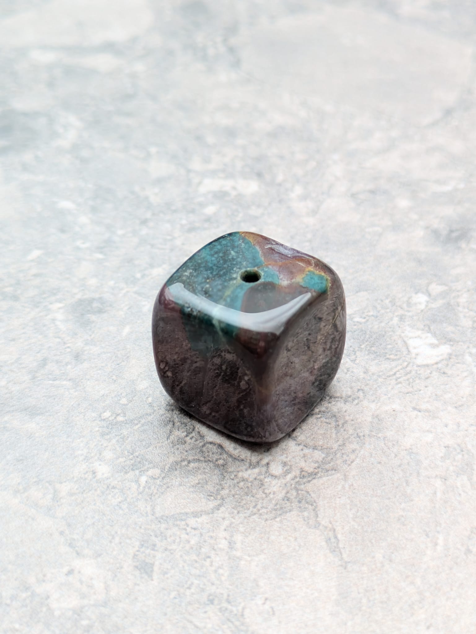 Este soporte para varillas de incienso Bloodstone está fabricado con precisión para sujetar sus varillas de incienso de forma segura. Hecho de auténtica piedra de sangre, este soporte promueve una atmósfera relajante y calmante, perfecta para la meditación o la relajación. Experimente los beneficios de la aromaterapia con este exquisito soporte.