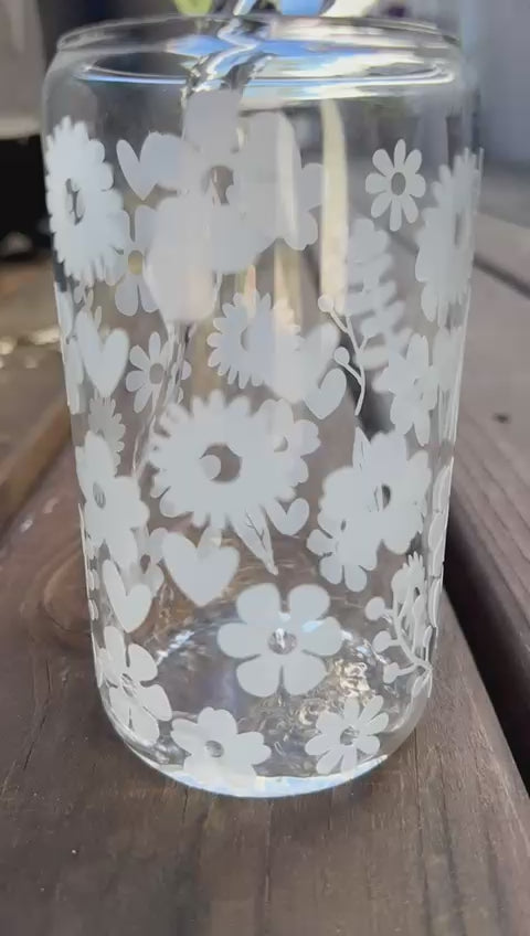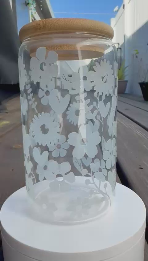 Color Changing Flowers Glass Cup with Bamboo Lid & Glass Straw