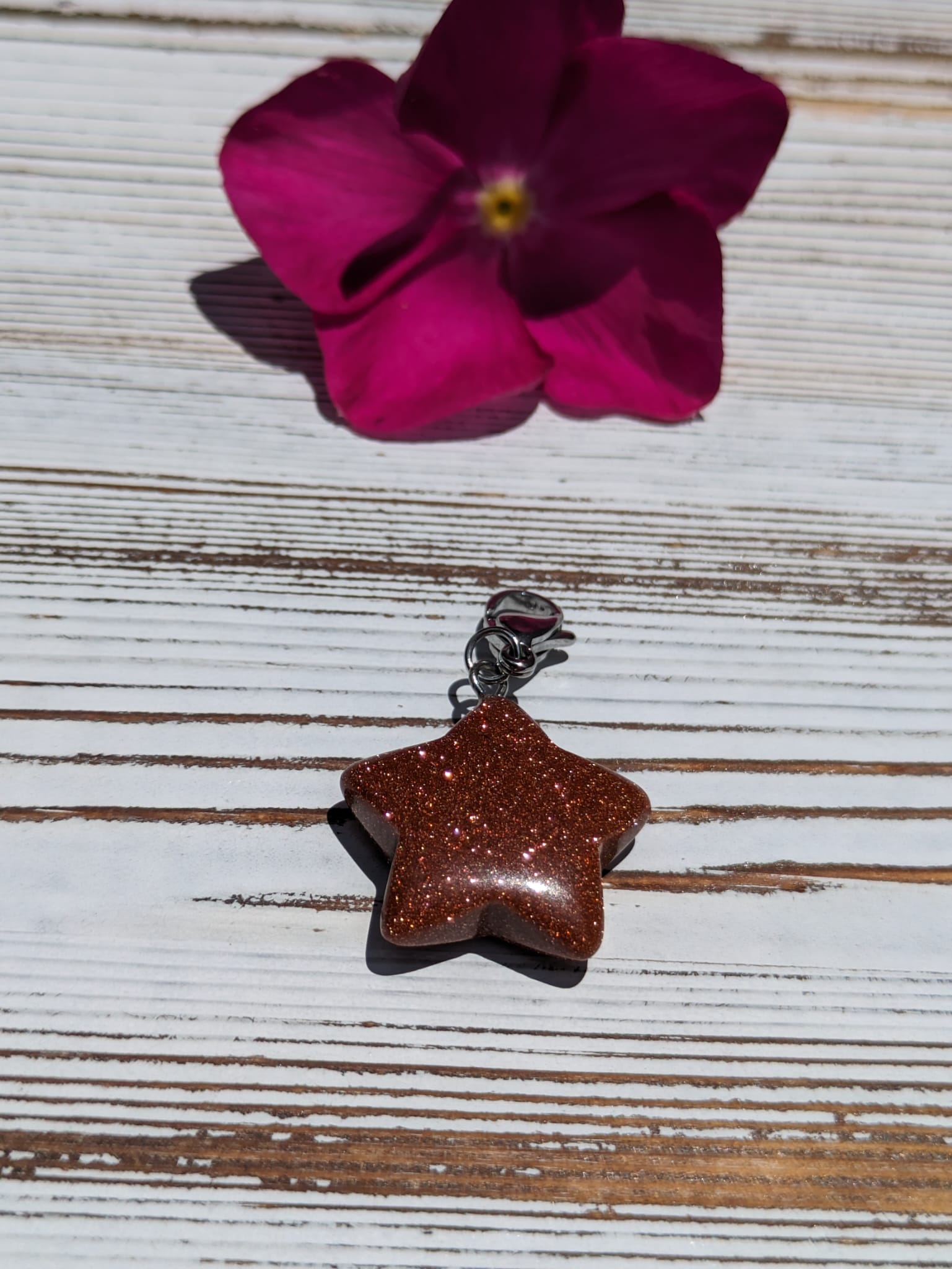 Este dije de cristal Goldstone Star añade un toque de elegancia a cualquier pieza de joyería. La reluciente piedra dorada brilla intensamente y tiene un corte en forma de estrella, lo que la convierte en una adición única y elegante a su colección. Fabricado con materiales de alta calidad, este dije seguramente realzará cualquier atuendo.