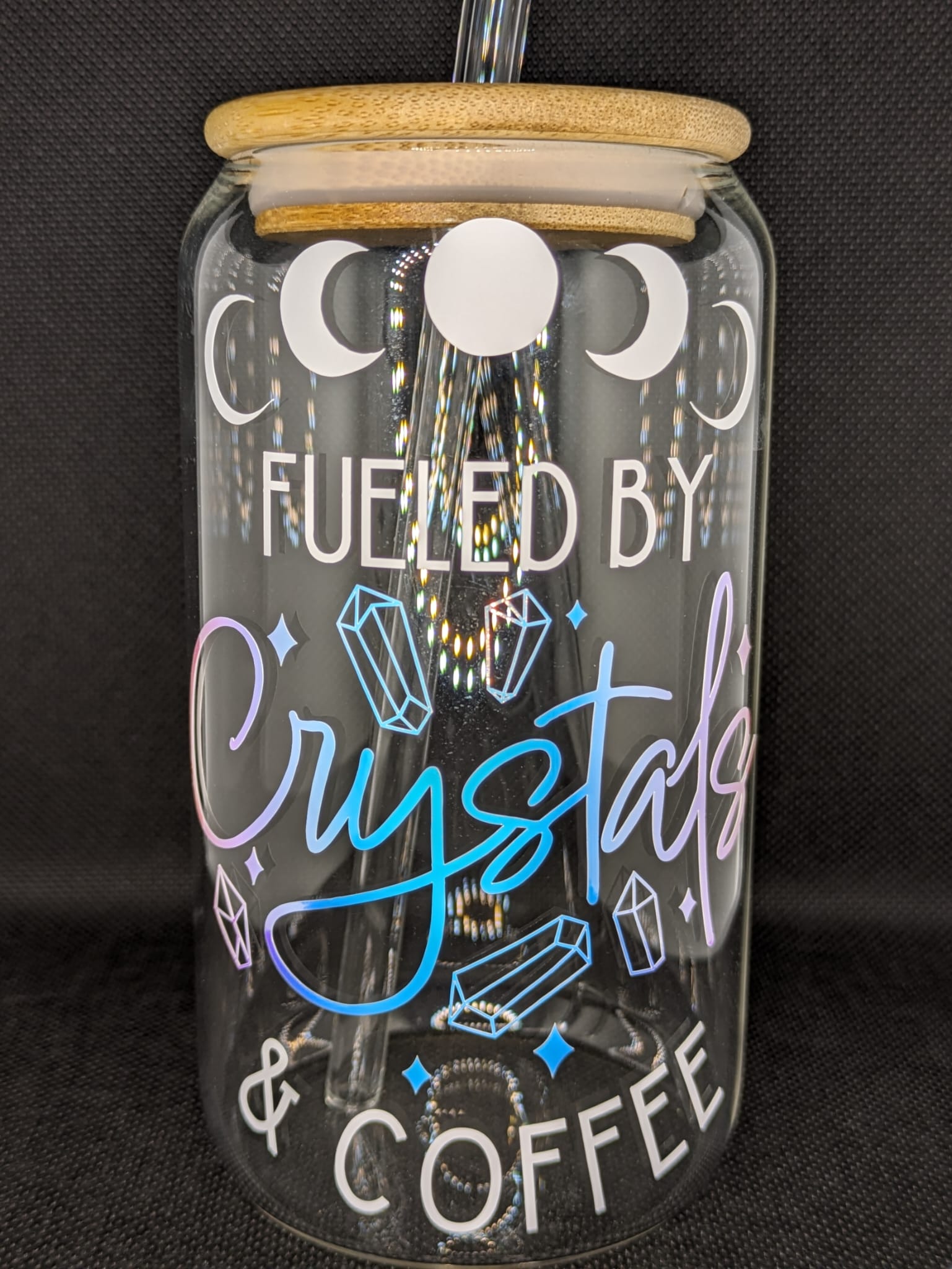 ¡Presentamos la taza de cristal para café y cristales Fueled by Crystals de 16 oz! Esta taza ecológica está hecha con vidrio de alta calidad, tapa de bambú y pajita de vidrio. El diseño único combina la energía positiva de los cristales con el rico aroma del café. Disfrute de sus bebidas de forma sostenible mientras aprovecha el poder de la naturaleza.