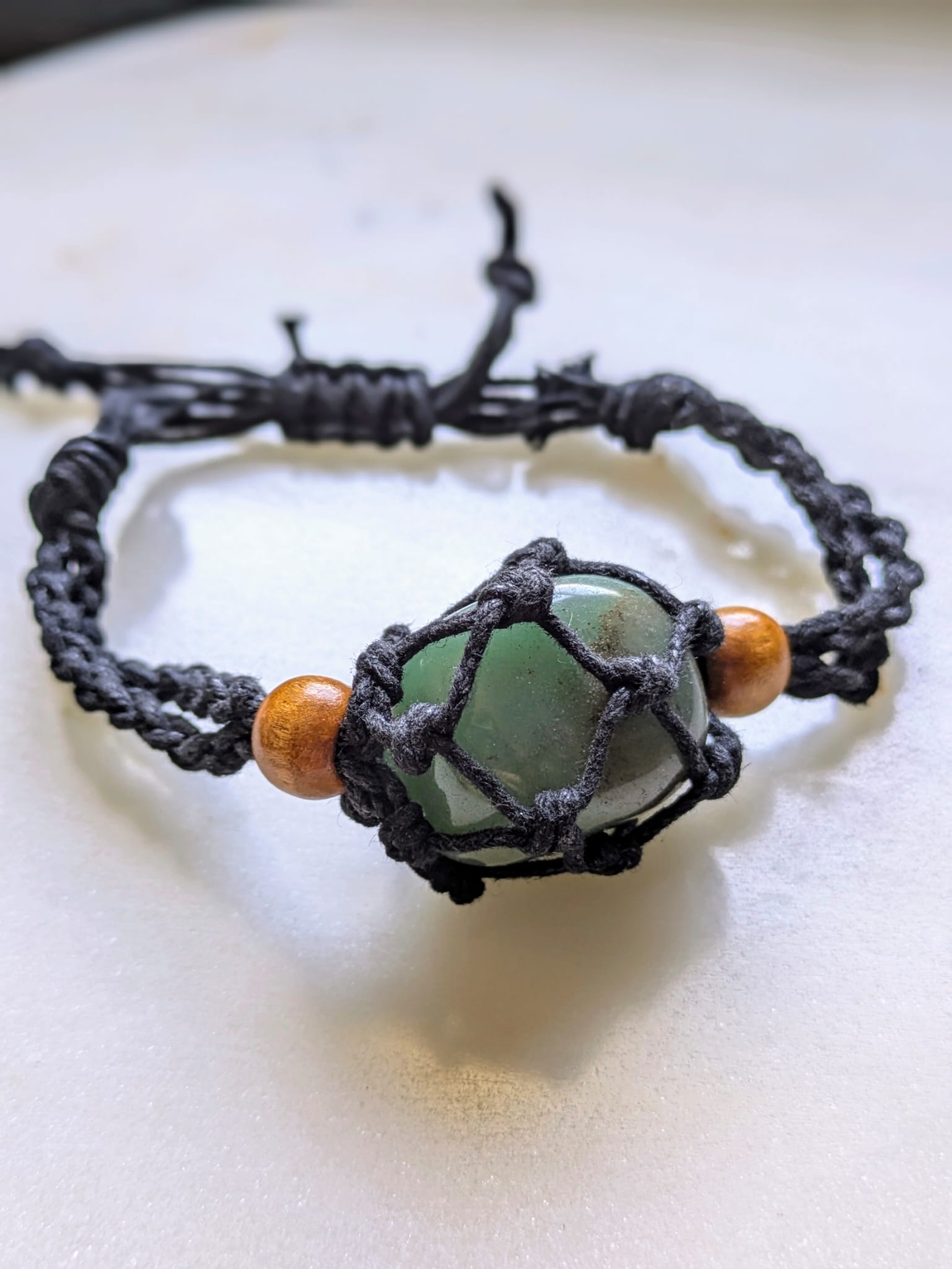 Crafted with natural Green Aventurine, this rope bracelet is the perfect accessory for those seeking balance and prosperity. With its stone holder, this bracelet will keep the powerful properties of Green Aventurine close to you, providing its calming and soothing effects. Experience the beauty and benefits of this unique piece.