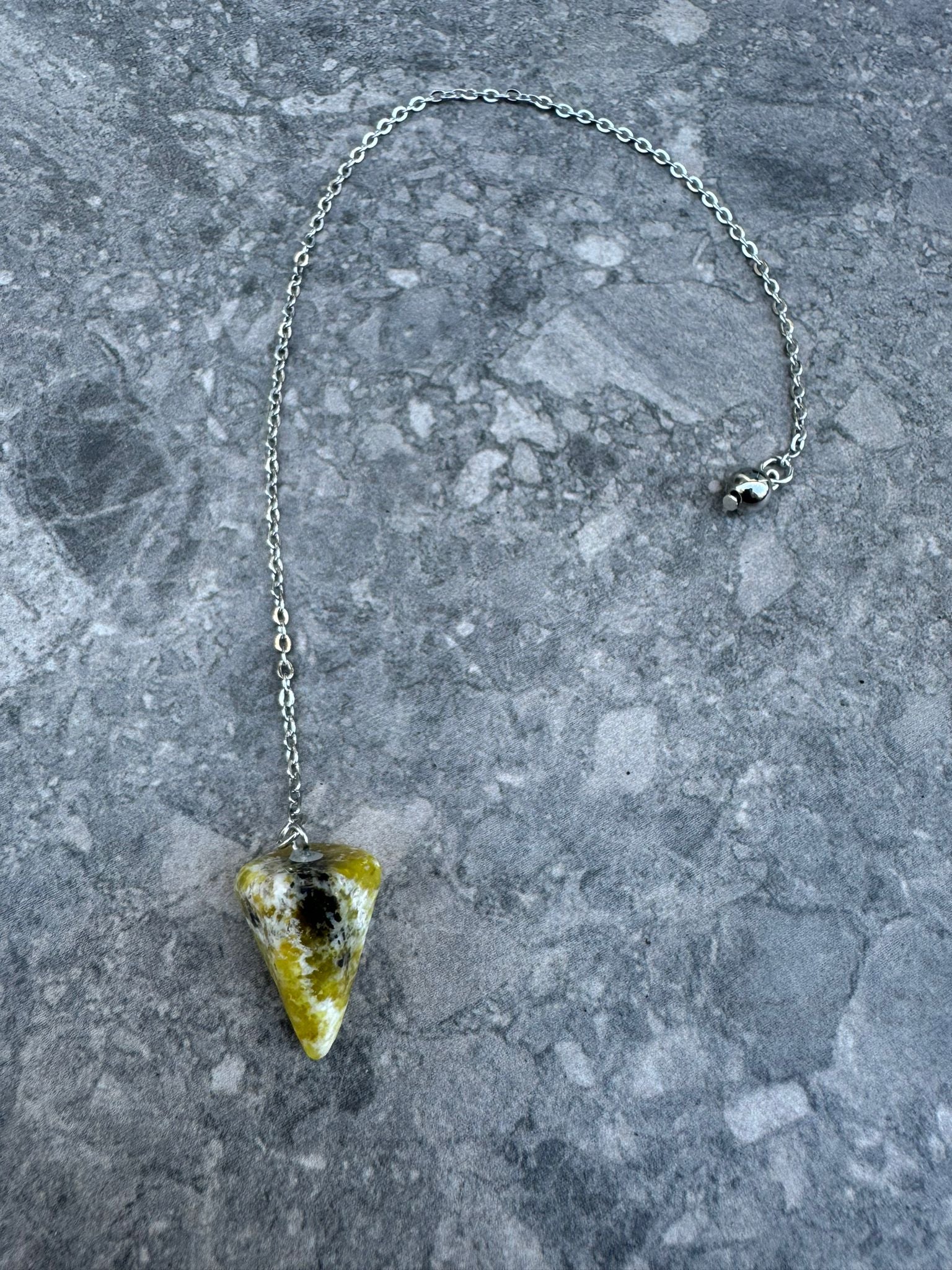 Elaborado a partir de la piedra única y poderosa Serpentina, este péndulo ofrece conexión a tierra y protección al mismo tiempo que promueve la paz interior y equilibra las emociones. Su diseño suave y fluido permite una adivinación precisa y exacta. Aprovecha tu intuición con el Péndulo Serpentino.