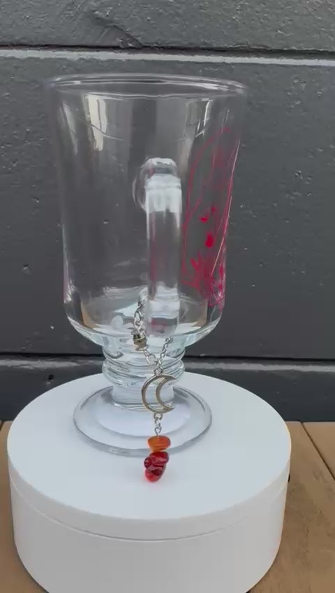 Copa de vidrio holográfica de serpiente con dije de cristal de cornalina