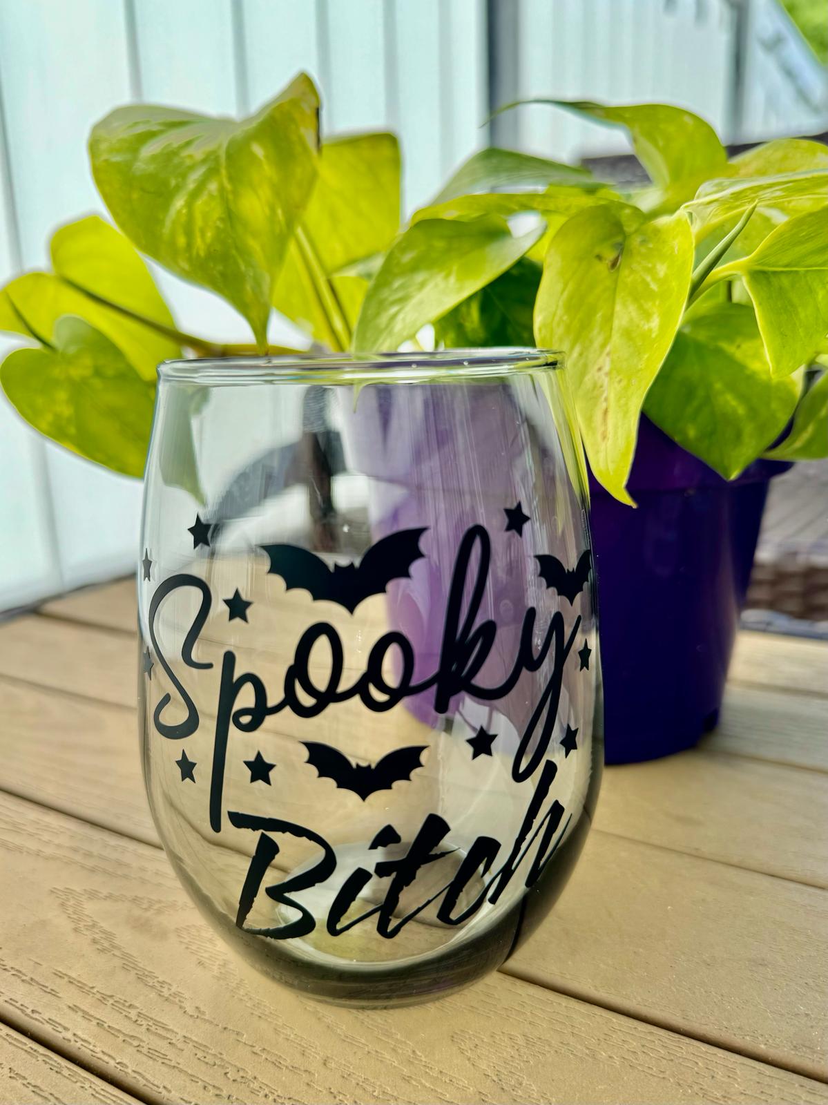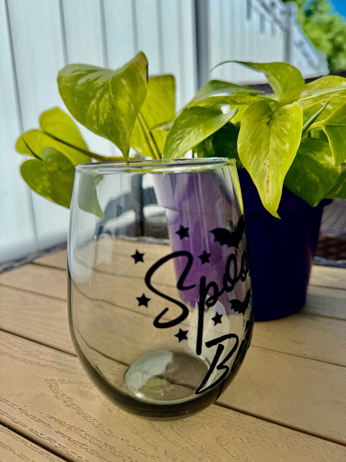 Mejora tus festividades de Halloween con las copas de vino ahumado sin tallo Spooky Bitch, con capacidad para 20,5 onzas líquidas. de tu bebida espeluznante favorita. Con un diseño moderno y mayor capacidad, estos vasos son perfectos para añadir un toque de sofisticación a tus celebraciones espeluznantes.