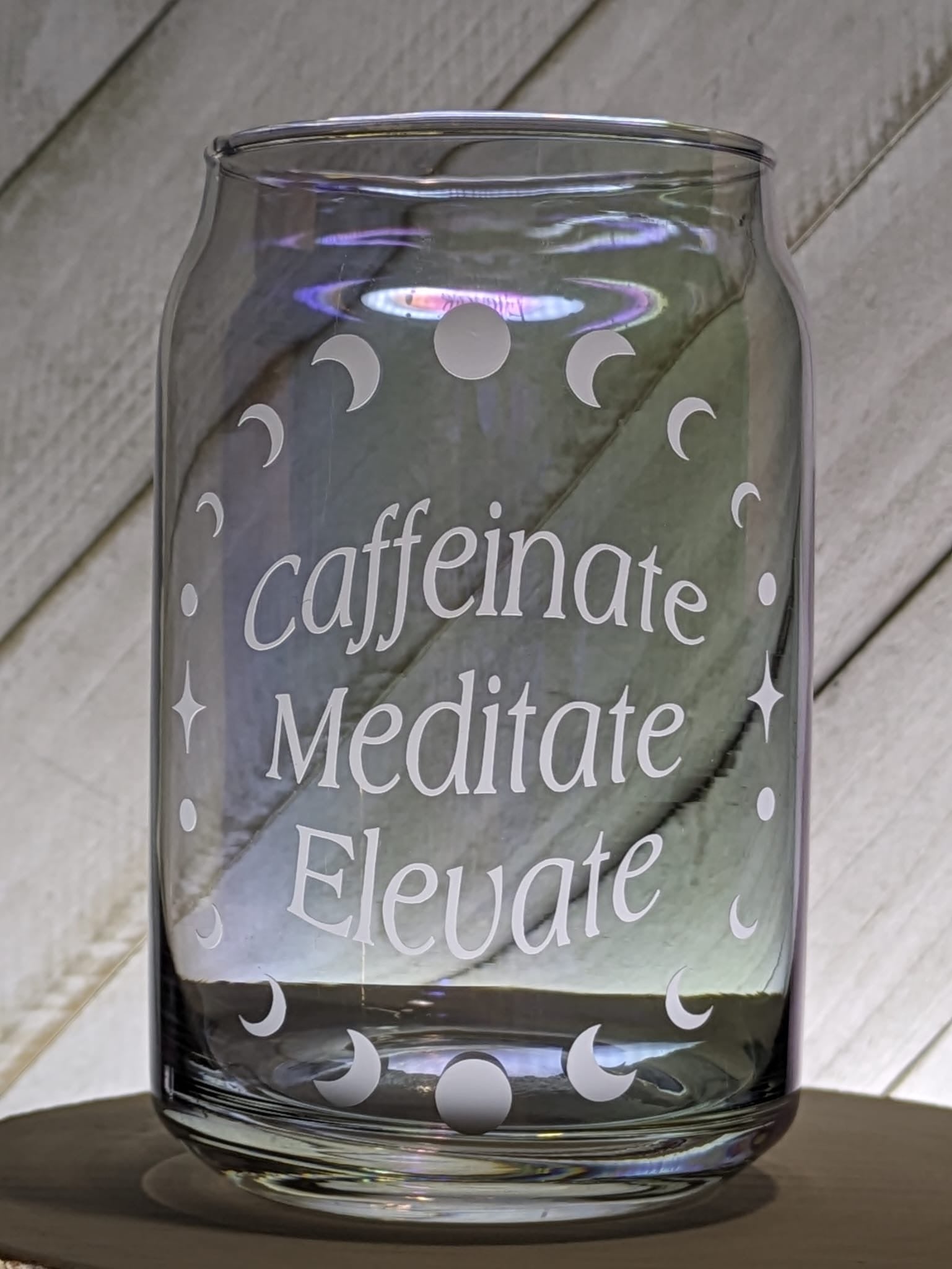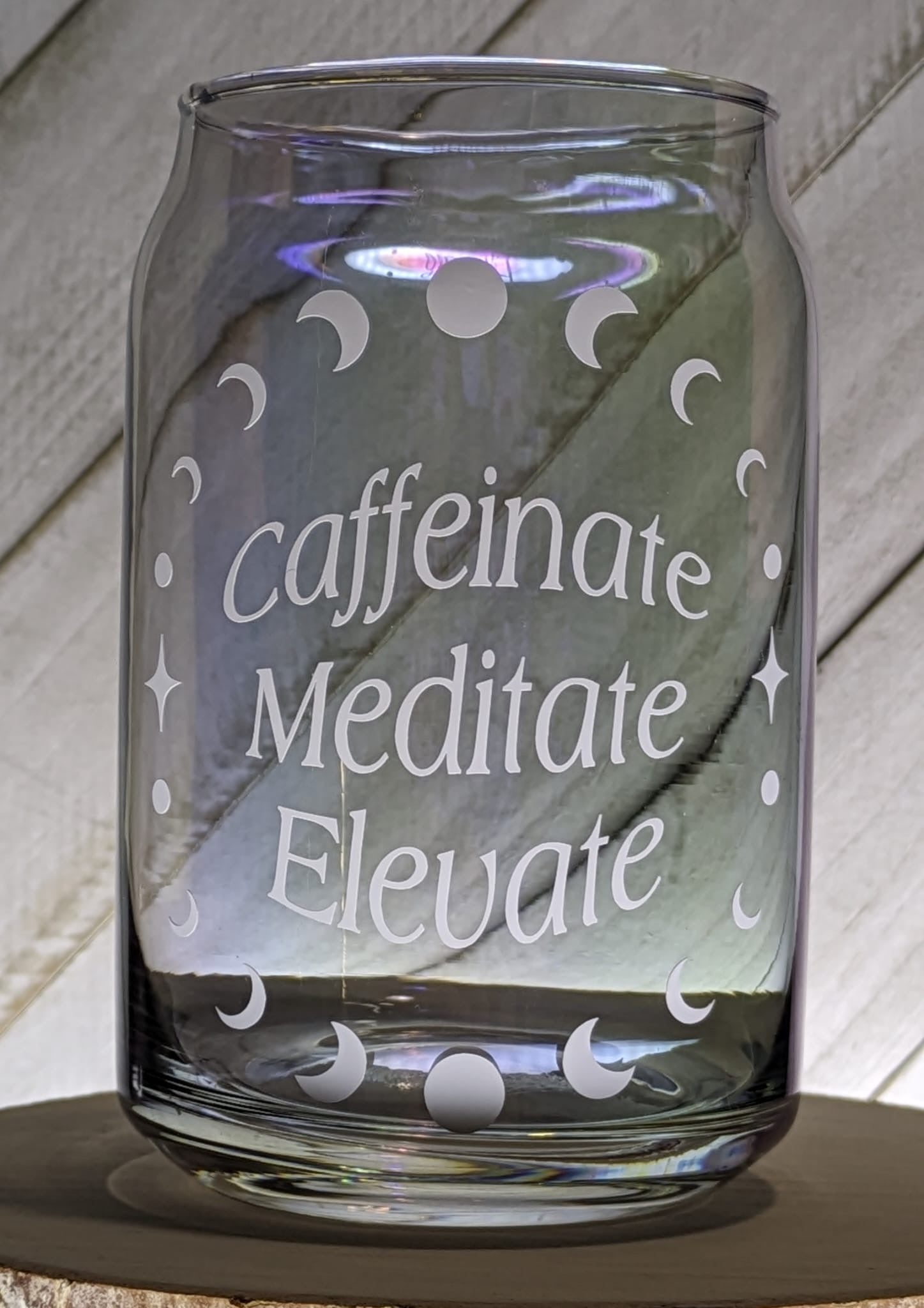 Caffeinate Meditate Elevate | Beer Can Glass Cup