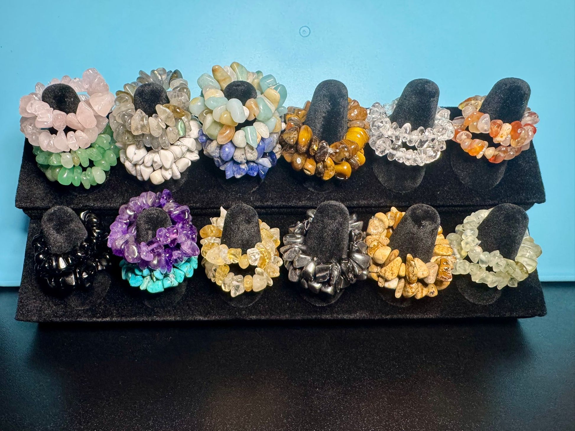 Whether you're stacking them, gifting them, or wearing one as a daily reminder of your intention, our Elastic Crystal Chip Rings are a must-have for any crystal lover.