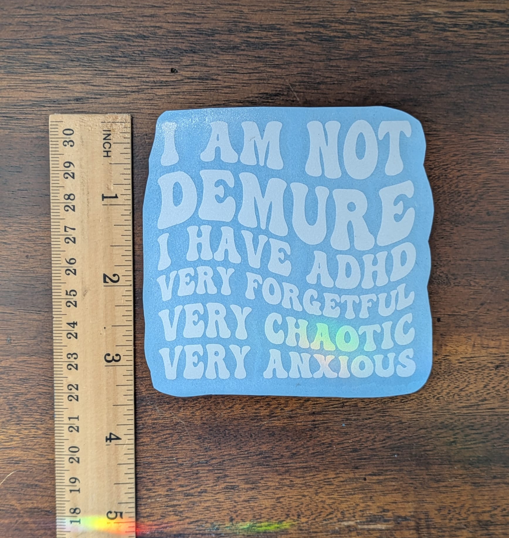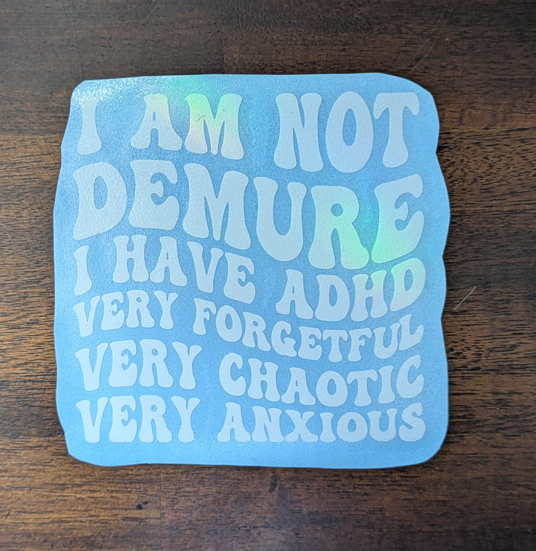 I Am Not Demure I Have ADHD (Permanent Mirror Vinyl Decal)